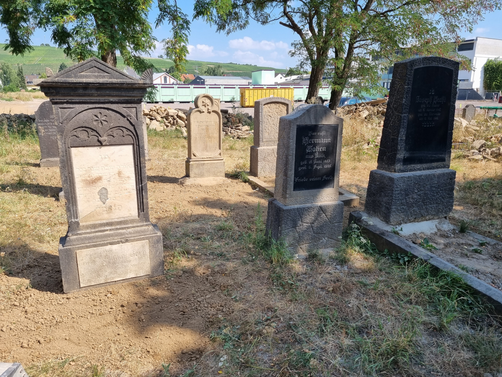 Am Samstag, 30.07.2022 waren wieder fünf Steinhauer vor Ort. Klaus Hilger, Georg „Schosch“ Müller , Egon Schumacher, Johannes „Horschel“ Montermann und Helmut Reuter. Sie haben heute zwar nur drei Grabmale gemacht, da die Steine dreiteilig waren. Leider ist ein Grabmal beim Abbau auseinander gebrochen und konnte nur das Unterteil gesetzt werden. Die Schrifttafel und das Oberteil müssen nun wieder zusammen geklebt werden. Ein Grabmal war schon in mehre Teile gebrochen und wurde aufwendig mit Schraubzwingen wieder zusammen gesetzt werden. Einige Gräber hat Schosch wieder mit Muttererde befüllt. Ein, in der Nachbarschaft, Arbeitetender, hat uns mit dem Radlader Muttererde auf den Friedhof gebracht, somit müssen wir zukünftig nicht mehr mit der Schubkarre die Muttererde von einem 500 m entfernten Erdhügel anfahren.