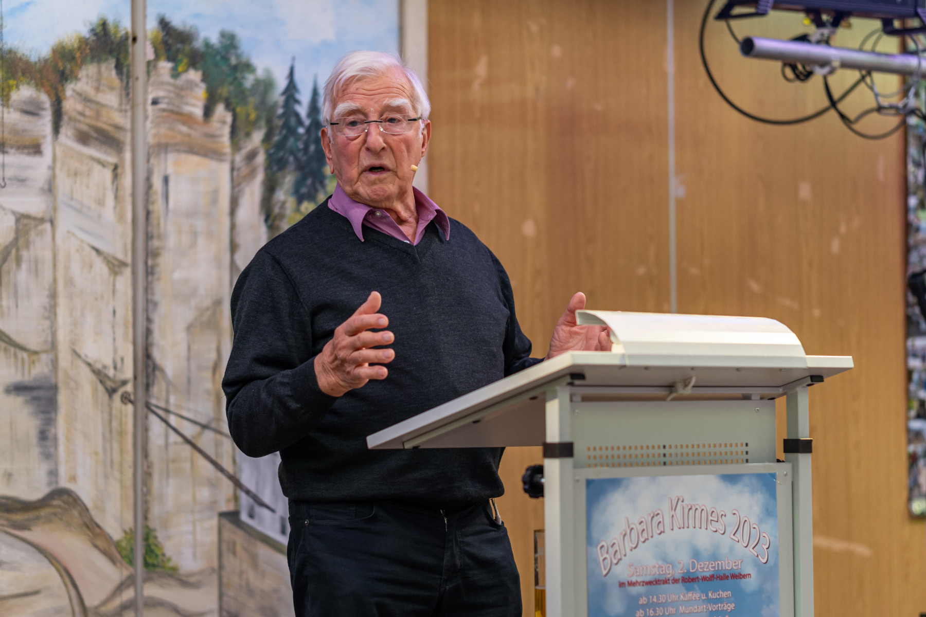 Barbara Kirmes 2023 3. Dezember 2023 Bernhard Klapperich Kommentar hinterlassen Am Samstag, 02.12.2023 war es mal wieder soweit. Der Steinhauerverein Weibern richtete zum 5. Mal die tradionelle Barbara Kirmes in Zusammenarbeit mit den Heimatfreunden Weibern aus. Pressebericht folgt. Dahms Langer Bild 3 von 30