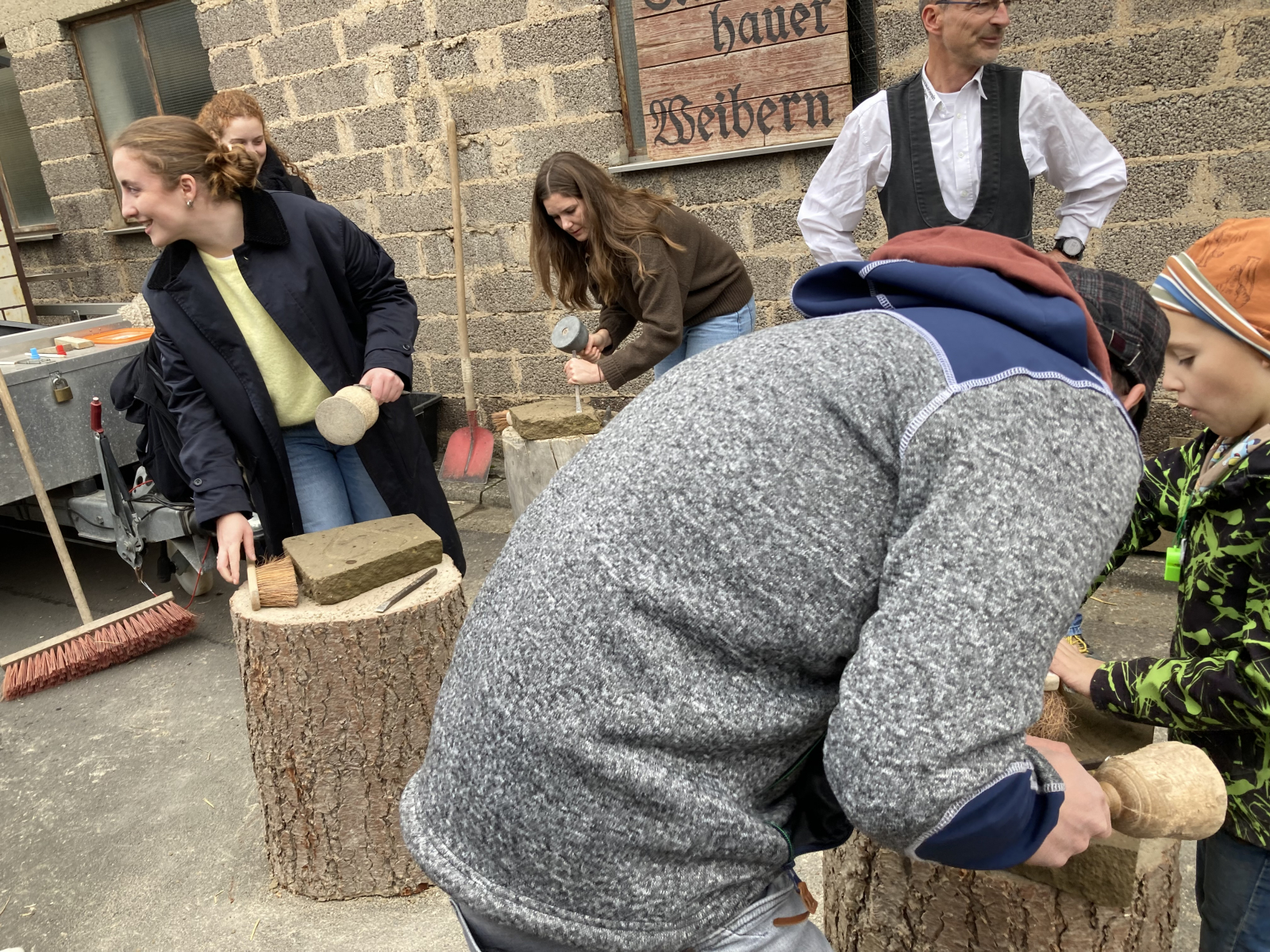 Mit großer Begeisterung machten sich die kleinen Künstler ans Werk und zeigten viel Geschick und Kreativität. Die Unterstützung durch die Steinmetze sorgte nicht nur für Sicherheit, sondern auch für spannende Einblicke in ein traditionsreiches Handwerk.