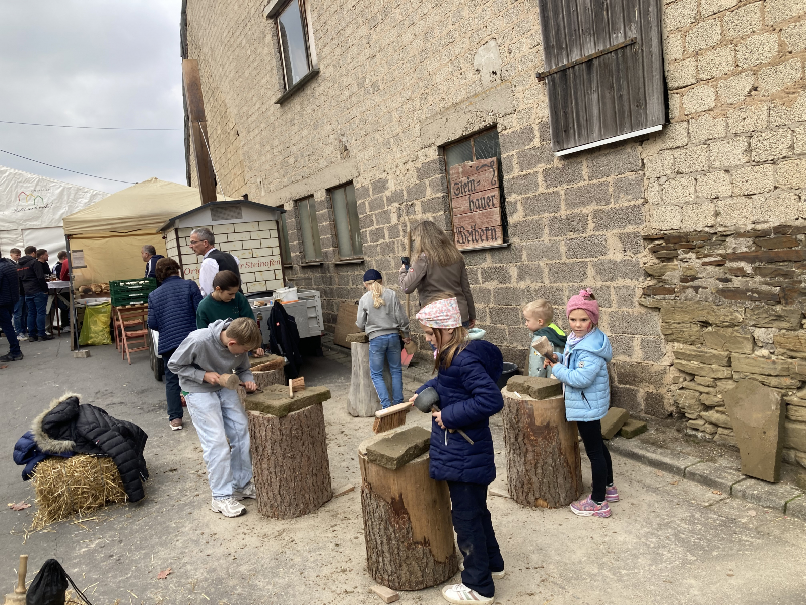 Im Rahmen der 750-Jahrfeier in Galenberg bot der Steinhauerverein ein ganz besonderes Mitmach-Erlebnis für Kinder an. Mit Klöppel und Eisen durften die jungen Besucher selbst Hand anlegen und einen Tuffstein bearbeiten – ganz wie die Profis.