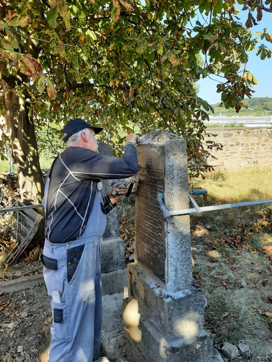 Arbeiten am Jüdischen Froiedhof Ahrweiler am 13.08.2022 durch den Steinhauerverein Weibern e.V.
