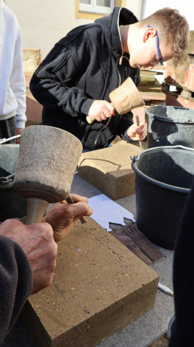 Dank des Steinhauervereins Weibern, der das benötigte Werkzeug zur Verfügung gestellt hat, war es der Dombauhütte Mainz möglich, eine Schülerveranstaltung in Kooperation mit der Martinus Realschule plus Mainz durchzuführen.