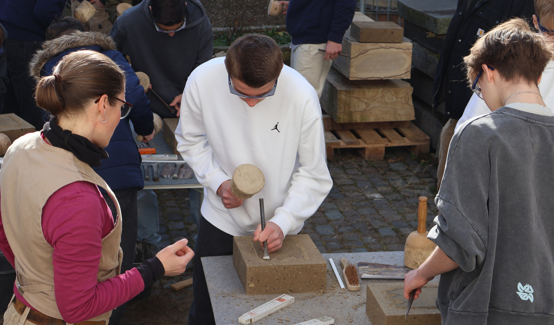 Dank des Steinhauervereins Weibern, der das benötigte Werkzeug zur Verfügung gestellt hat, war es der Dombauhütte Mainz möglich, eine Schülerveranstaltung in Kooperation mit der Martinus Realschule plus Mainz durchzuführen.